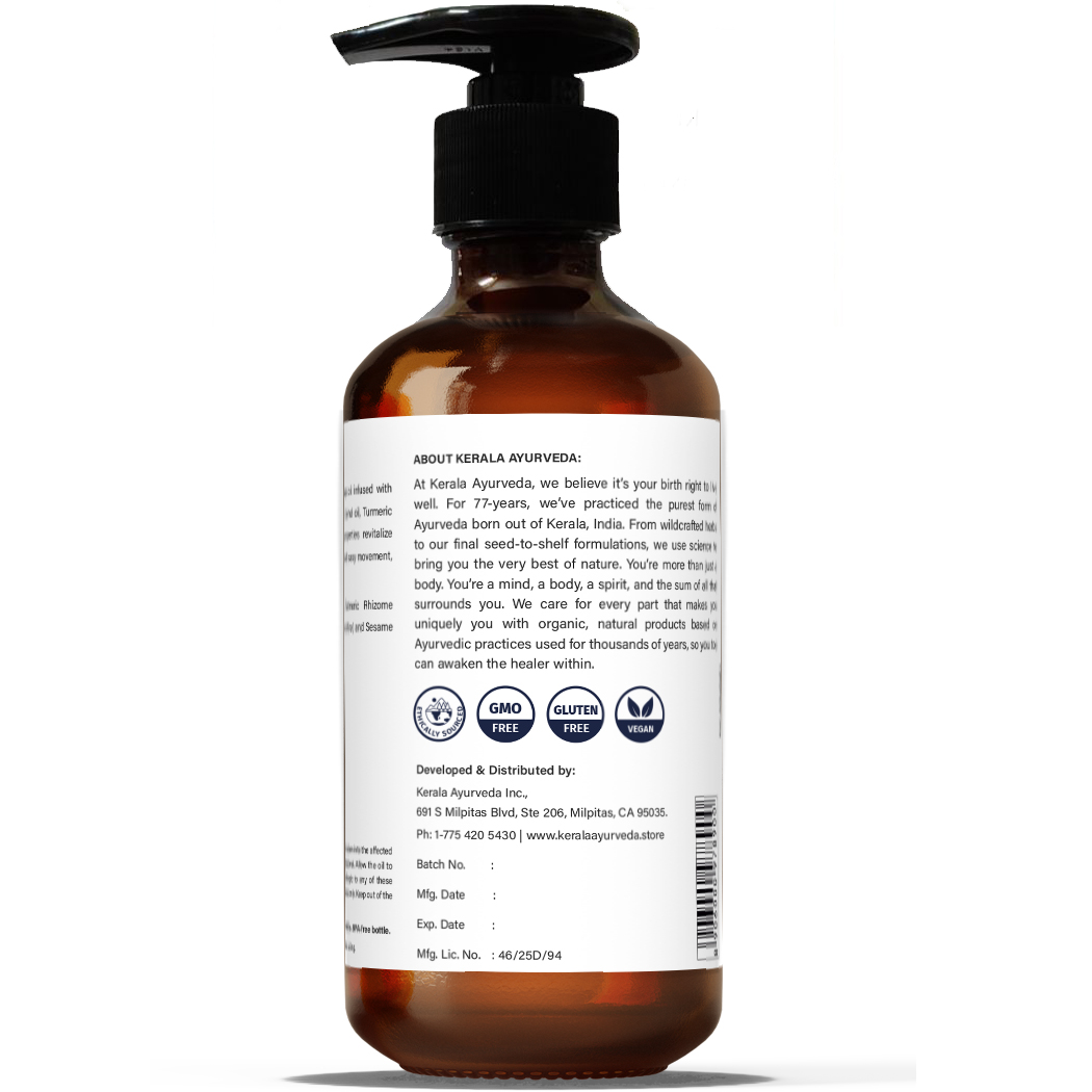 Jambeera Thailam is a sesame-based massage oil infused with soothing, nourishing herbs like rich Coconut Kernel oil, Turmeric and Lemon. Its natural anti-inflammatory properties revitalize muscle and joint tissue for strength building and easy movement, especially after intense exercise or training.