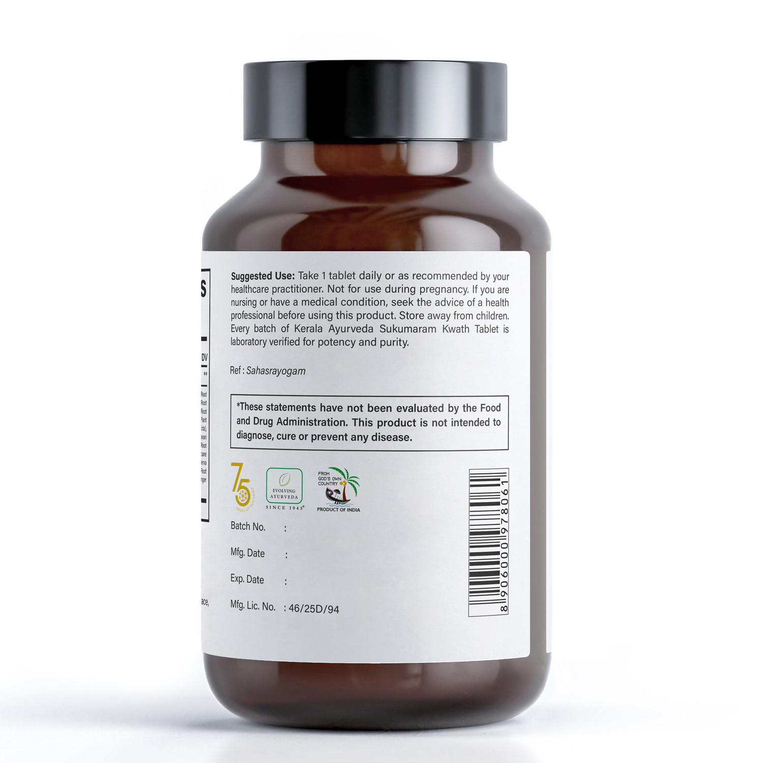 Sukumaram Kwath Tablets are formulated to promote normal menstrual cycles and support a healthy digestive tract. Cumin has been traditionally used to promote healthy digestion and support normal digestive enzyme functions. Licorice contains the anti-inflammatory chemical glycyrrhizin and is soothing to the digestive tract. Ashwagandha is calming and has anti-inflammatory properties. It is gentle enough to take everyday*